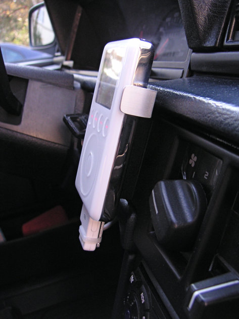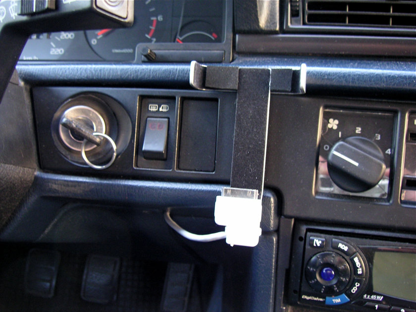Über diesen Punkt spule ich einfach hinweg, denn hier geht es ja eigentlich nur um einen iPod-Halter und dieser Artikel ist mir ohnehin schon zu lang geraten, oder? Außerdem ist jedes Auto anders, und dem versierten Bastler dürfte ohnehin klar sein, was grundsätzlich zu tun ist. Im Schnelldurchlauf: Die Audio-Leitung muß zum Radio (neudeutsch zur Head-Unit), die Stromversorgung muß vom Zigarettenanzünder zum iPod und die Kabel sollen möglichst unsichtbar sein.