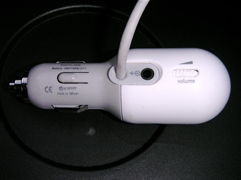 Basis meines Halters ist der Auto-Kit für iPod von Belkin (Part # F8V7058eaAPL). Dieser bietet neben dem begehrten Dock-Connector nämlich noch eine sehr angenehm gestaltete und kompakte Spannungsversorgung für den Zigarettenanzünder. Das Gerätchen beinhaltet auch einen Vorverstärker mit regelbarer Lautstärke und den Audio-Ausgang in Form einer 3,5 mm Klinkenbuchse. Die Qualität des Teilchens ist wirklich recht gut, so daß der Preis in Ordnung geht.